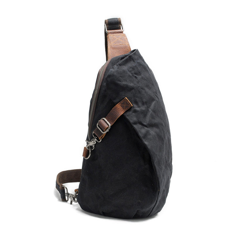 Pockets are too small to carry more things like your phone, snacks, charger, power bank, headphones, wallet, and so on? You can try this Waxed canvas sling bag, it is the perfect wearable tech companion for people who need to secure all of their belongings on their daily commute to work, across town, or to campus.