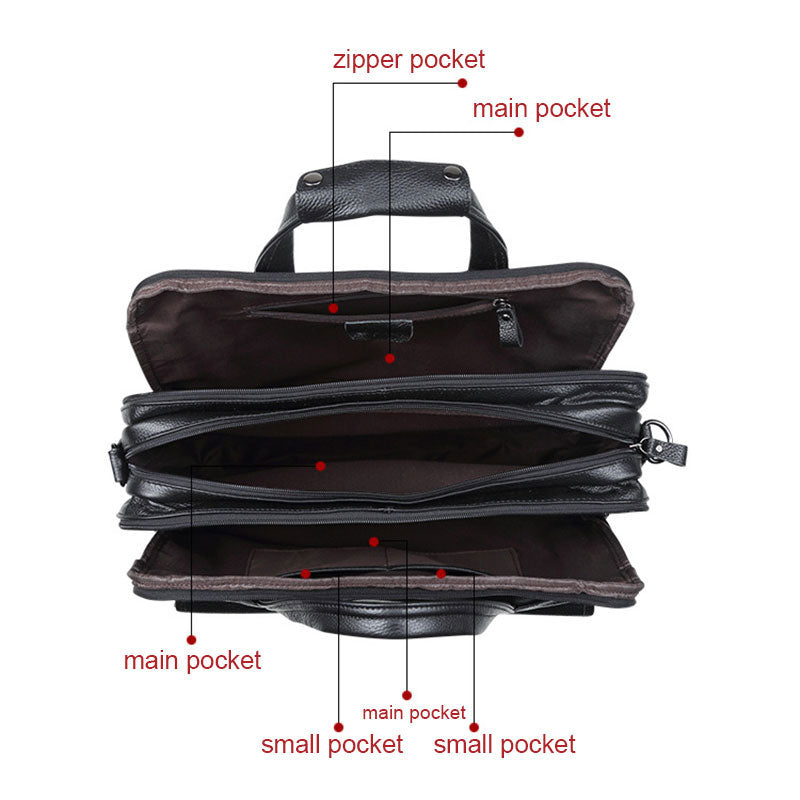 Plenty of pockets and compartments, including several exterior pockets and interior pockets. There are 3 main pockets, 1 front zipper pocket, and 1 back zipper pocket that keep your belongings safer; and there is a compartment inside that can hold a 15 inches laptop. Multiple pockets can fit your necessities, keep your accessories separate and organized.