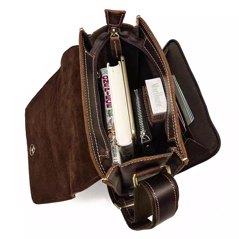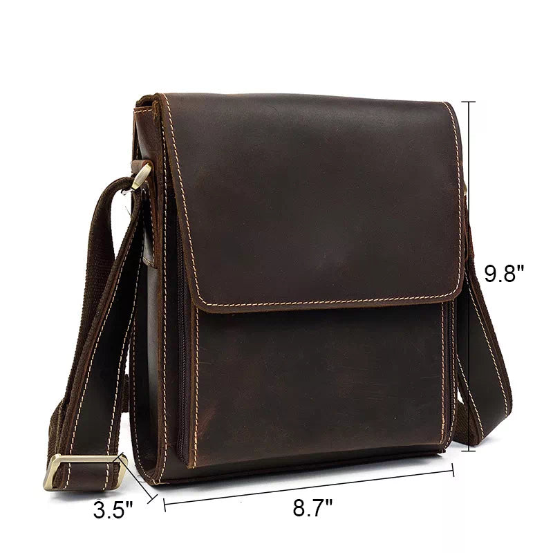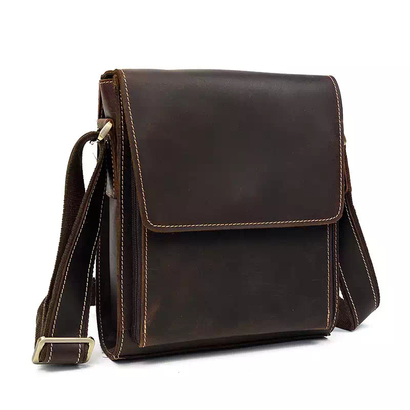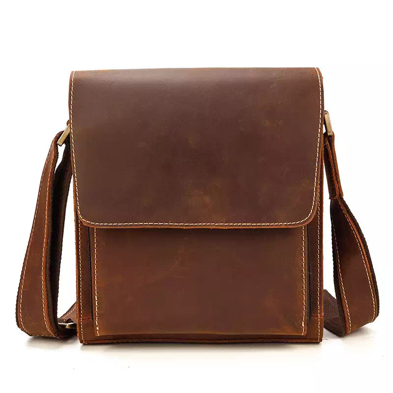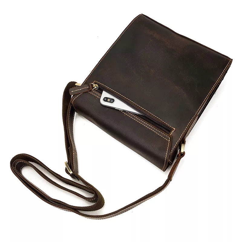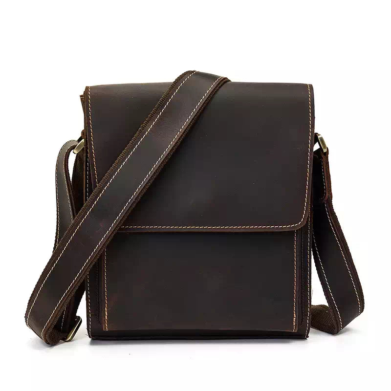 Men's vintage crazy horse leather crossbody bag.