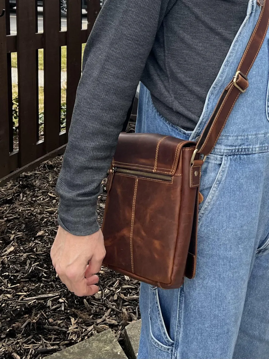 Men's Vintage Crazy Horse Leather Satchel Bag
