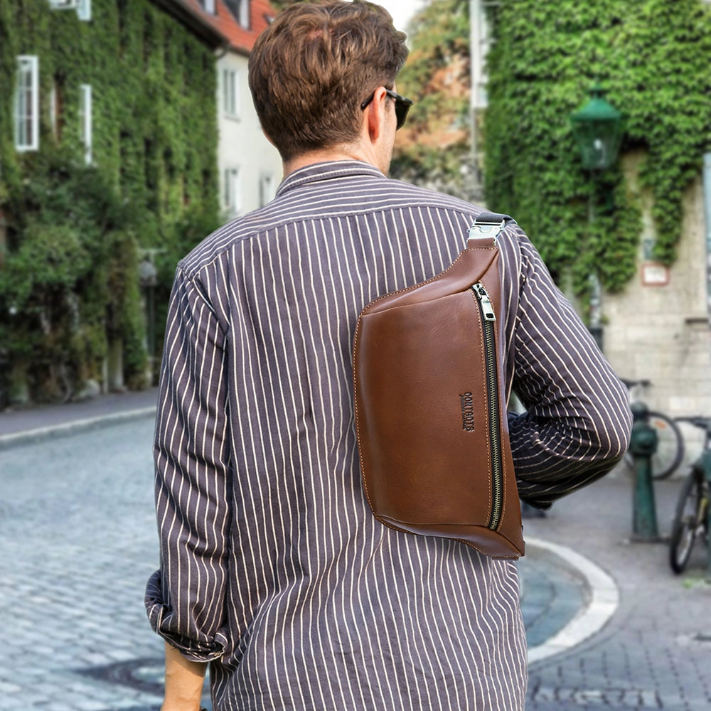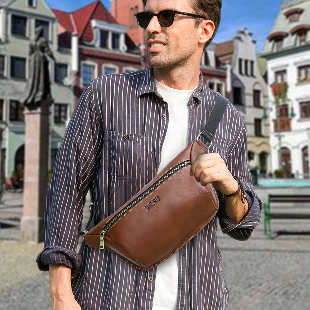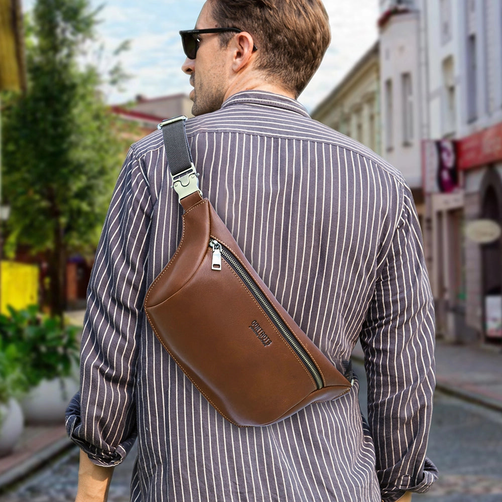Designed with understated confidence, this leather fanny pack strikes the perfect balance between vintage charm and modern function. Its clean, masculine lines and rich leather texture make it unmistakably built for men, not flashy, not outdated, just timeless. Whether worn casually on weekends or paired with everyday outfits, it complements your look without trying too hard.