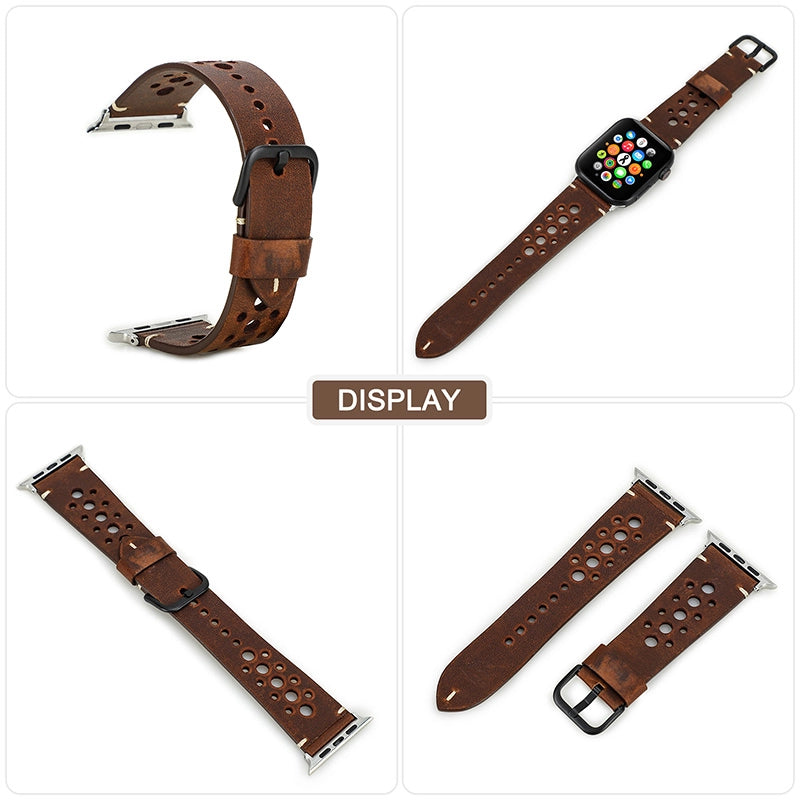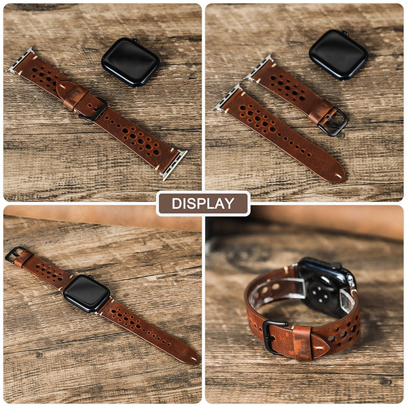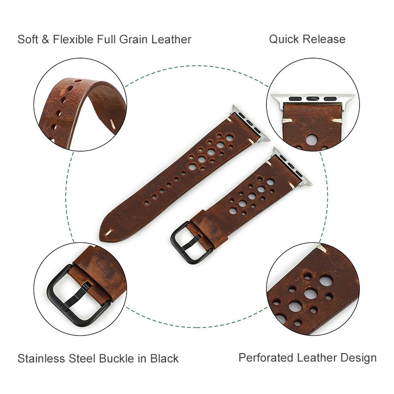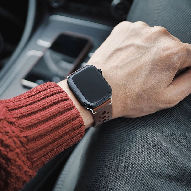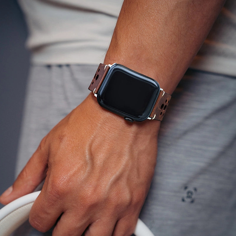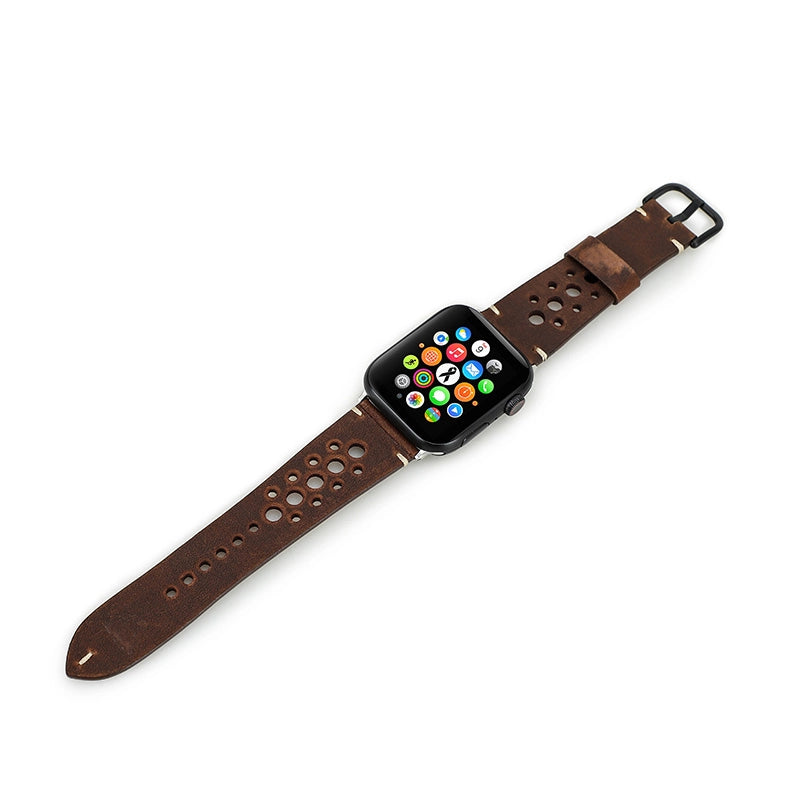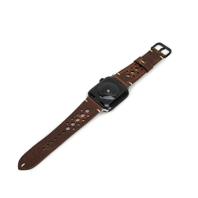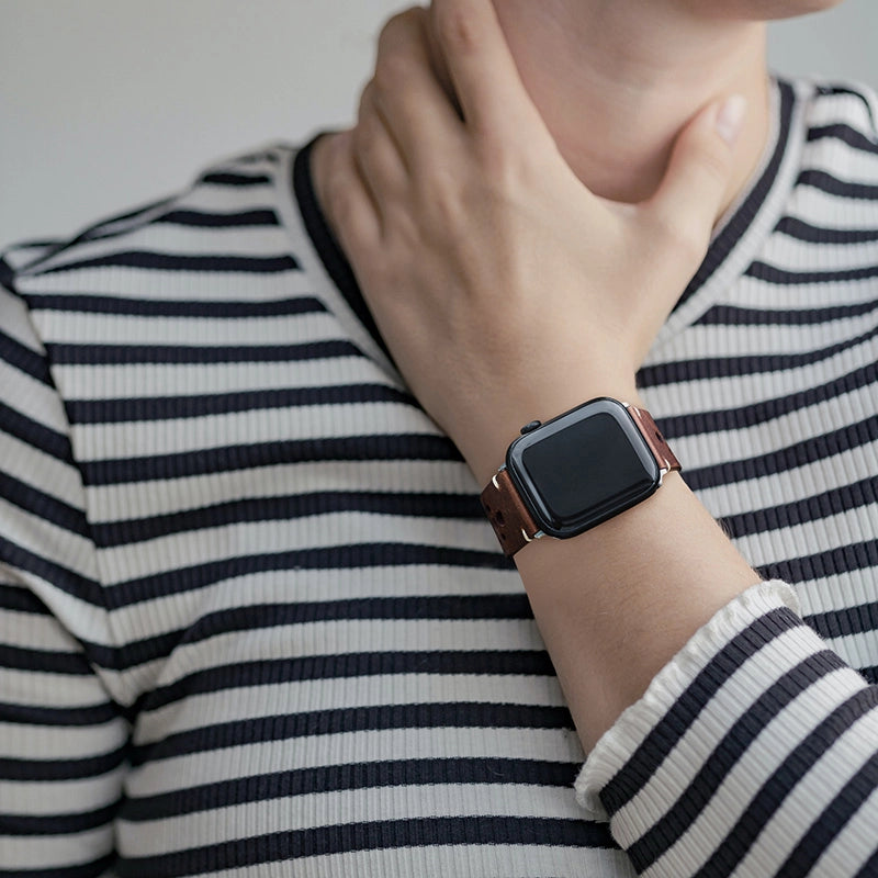 Crafted from high-quality full-grain leather, our Apple Watch strap offers durability, comfort, and a luxurious feel. The leather softens and develops a natural patina over time, adding unique character to your strap, making it a perfect choice for those looking for a stylish and long-lasting accessory for their Apple Watch.